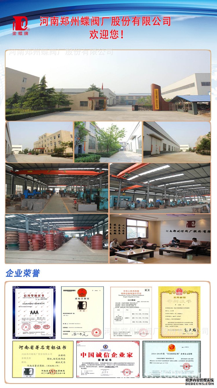 河南鄭州蝶閥廠股份有限公司服務 售前服務 河南鄭州蝶閥廠股份有限公司(原鄭州蝶閥廠)是1976年開始生產(chǎn)蝶閥的專業(yè)廠家之一, 是河 南 省重合同、守信用企業(yè);質(zhì)量信得過企業(yè),1996年通過GB/T19001-ISO9001質(zhì)量體 系認證 和產(chǎn)品質(zhì)量認證,是化工部、水利部