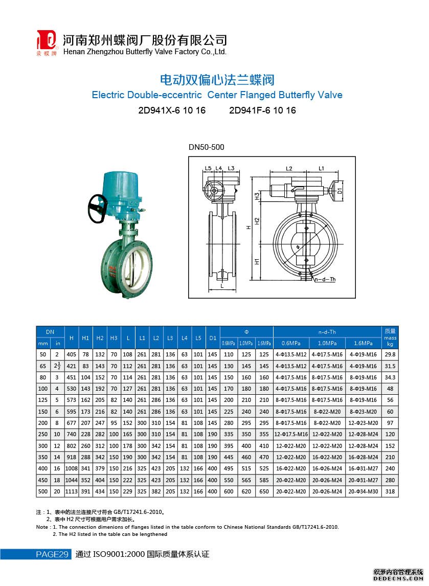 電動(dòng)雙法蘭蝶閥 D641X型